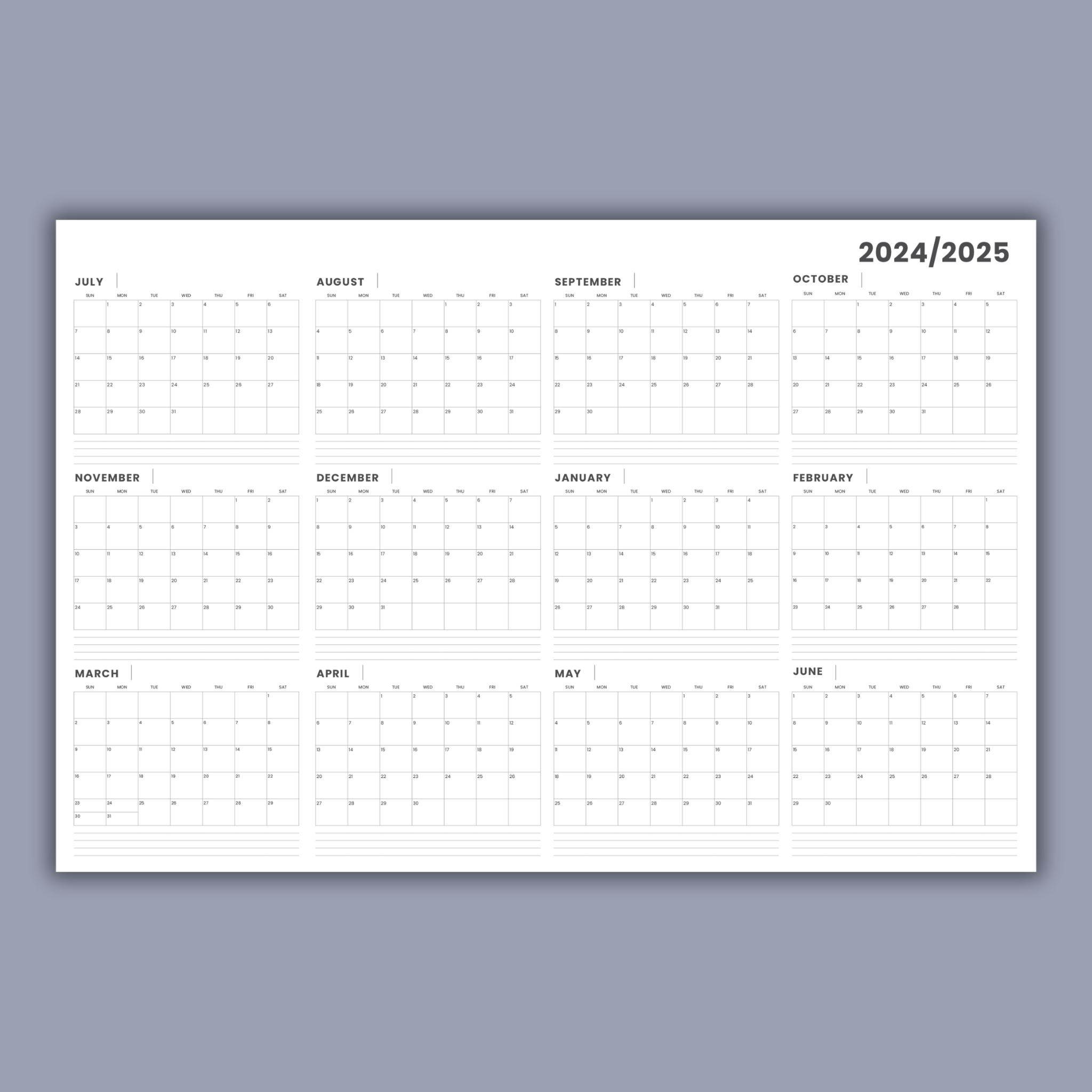 2025/2025 Yearly Calendar One Sheet Printables, Year at a Glance